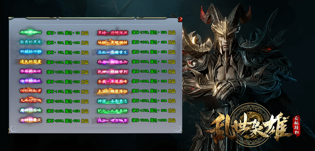 【内容介绍】:《乱世枭雄》超级开天 全屏雷电 怪多激情 狂暴沙捐!